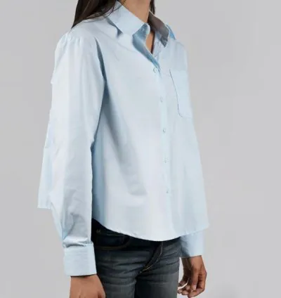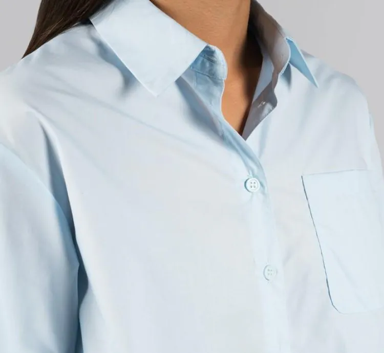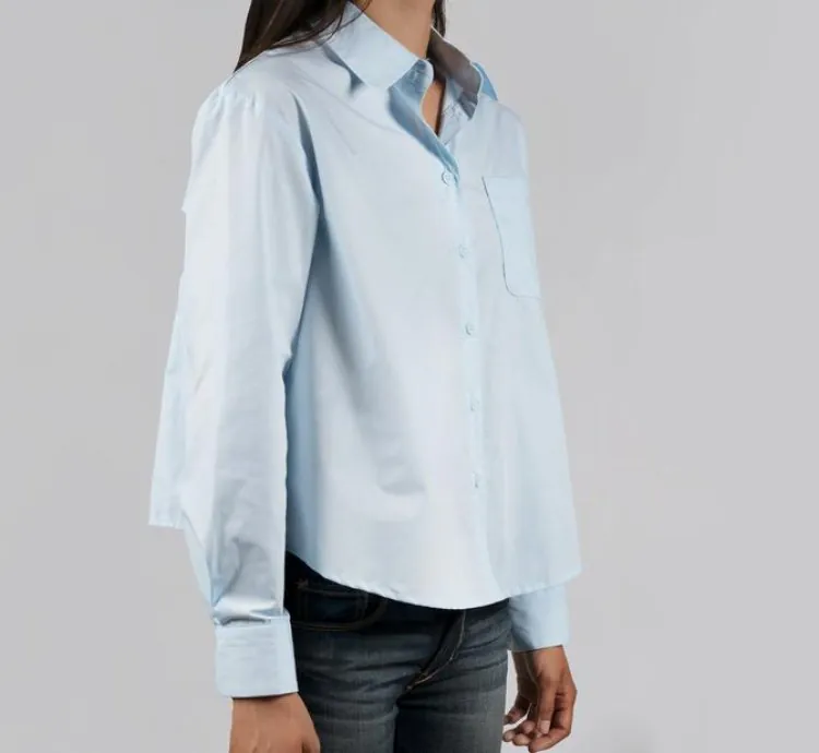 The light blue color adds a fresh, airy touch to your wardrobe, making it a versatile piece that can be dressed up or down. Whether paired with jeans for a laid-back weekend look or tucked into tailored trousers for a polished office outfit, this shirt is sure to elevate any ensemble.